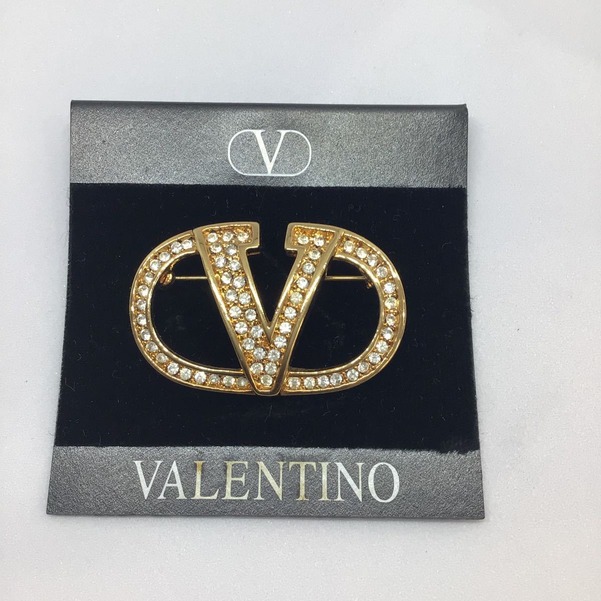 VALENTINO 발렌티노 브로치 액세서리V로고 시그니처 크리스탈 브로치GOLD