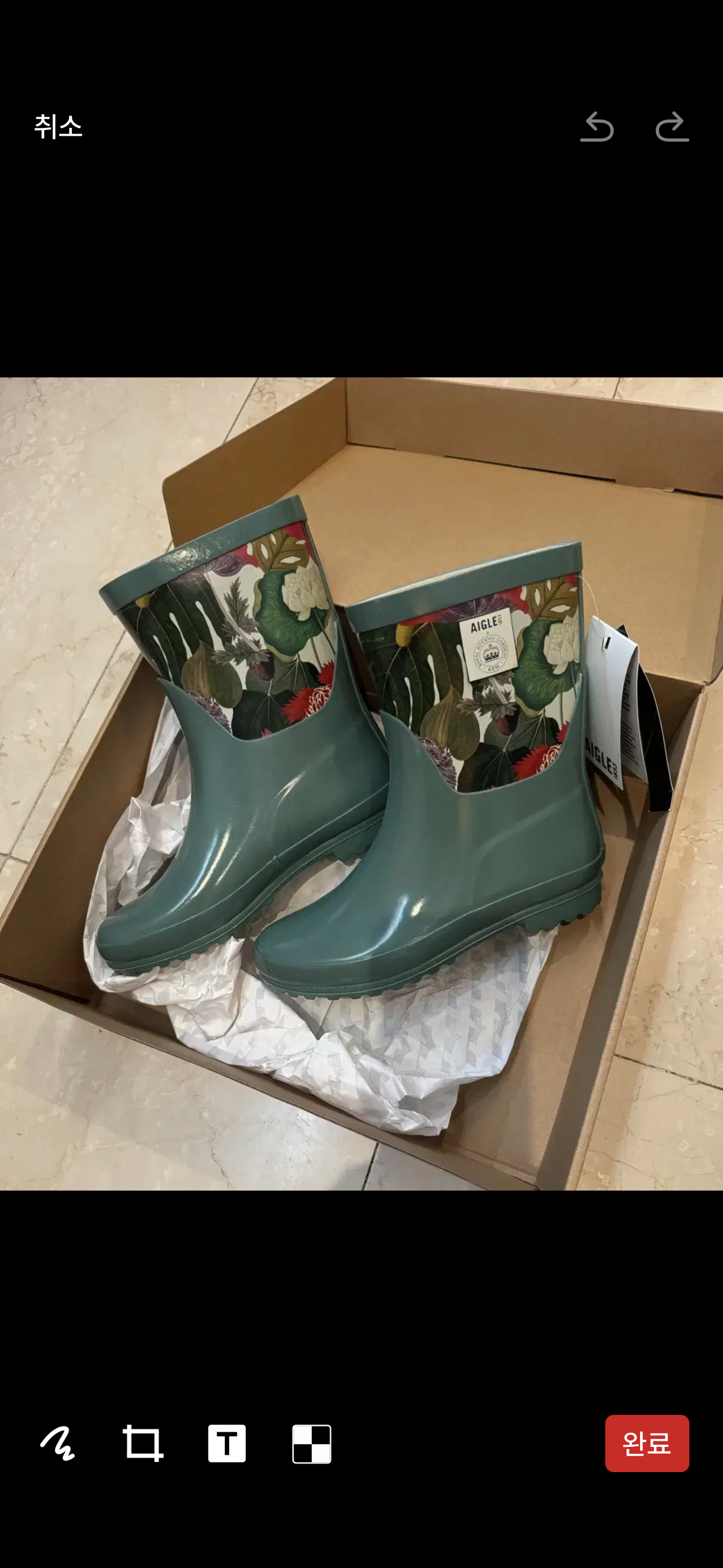 (새상품)에이글 Aigle 미들레인부츠 그린 프린팅 웰링턴 35